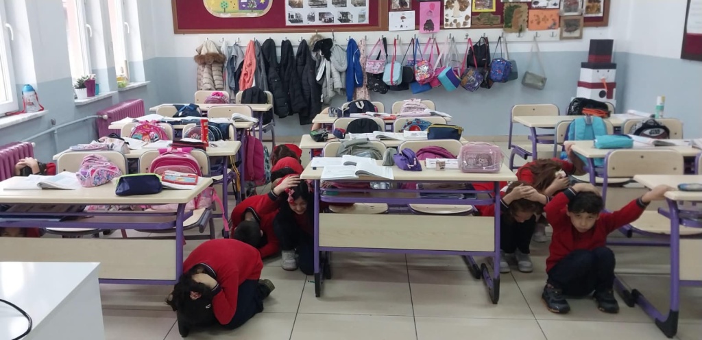 13 Ekim Dünya Afet Rislerinin Azatılması Günü kapsamında okulumuzda öğrencilerimize eğitimler verilmeye devam ediliyor. Gün içinde tatbikatlar yapılıyor.
